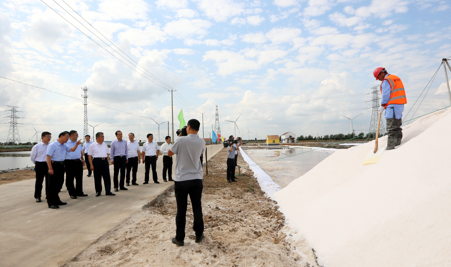 9月24日上午,市委書記項雪龍在日曬制鹽公司考察調(diào)研,看望慰問鹽業(yè)生產(chǎn)一線職工。市委常委、秘書長黃遠征,副市長李振峰參加調(diào)研。集團公司黨委書記、董事長楊龍,總經(jīng)理胡建明等陪同調(diào)研。