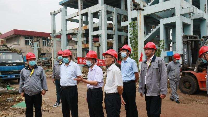 9月14日下午,集團(tuán)公司黨委書記、董事長(zhǎng)楊龍、總經(jīng)理胡建明、副總經(jīng)理張其海等一行,深入金航資產(chǎn)經(jīng)營(yíng)公司,就關(guān)?;て髽I(yè)拆除現(xiàn)場(chǎng)施工安全情況進(jìn)行檢查。