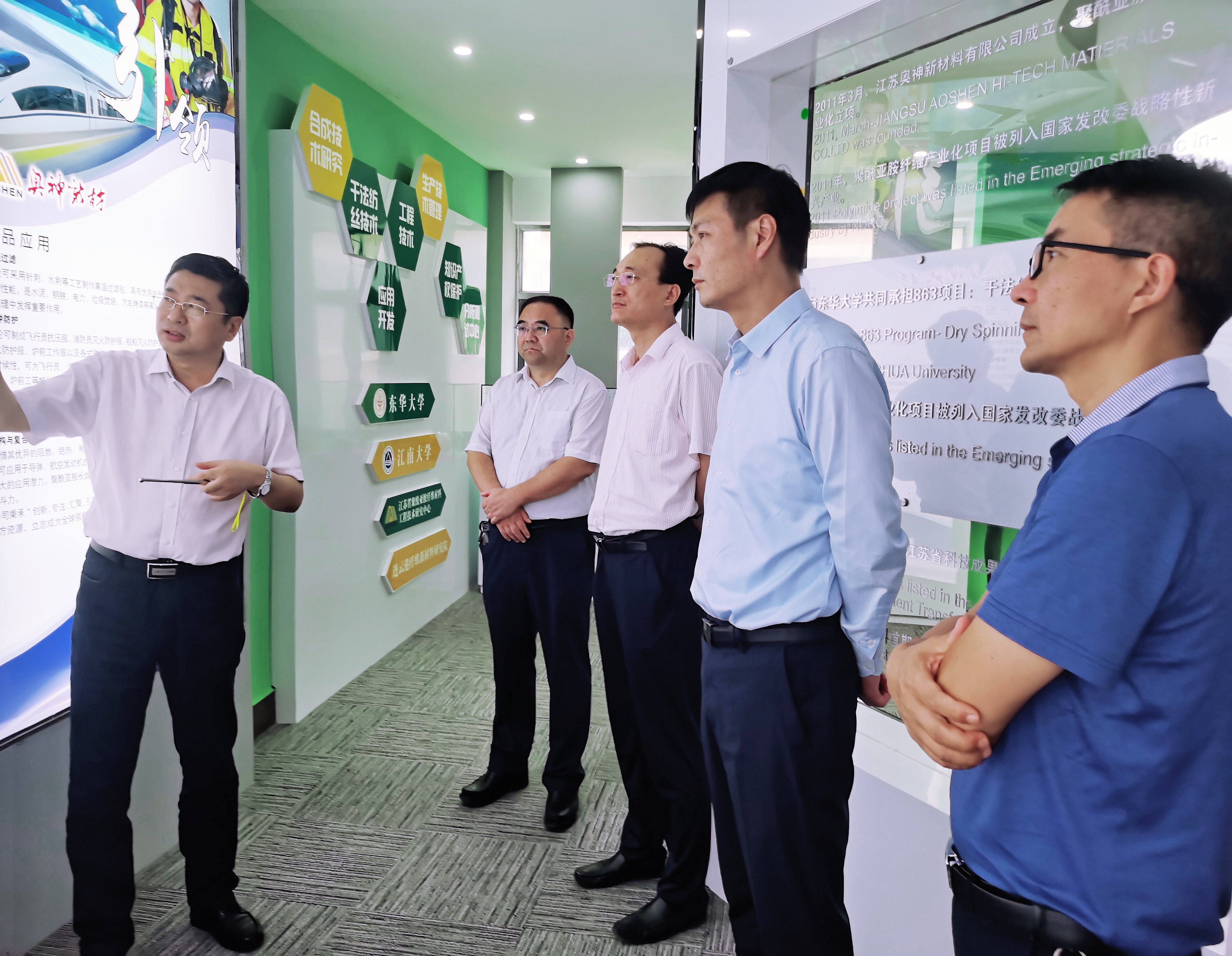 魏愛春一行先后參觀了公司展廳,實地察看生產現(xiàn)場,聽取了奧神新材料公司生產經營、市場開發(fā)、項目建設等情況的匯報,對奧神新材料公司的發(fā)展和規(guī)劃建設給予了充分肯定,希望奧神新材料公司繼續(xù)堅持創(chuàng)新引領,拓展后道產品,不斷提高企業(yè)核心競爭力,為全市化纖產業(yè)高質量發(fā)展做出更大的貢獻。