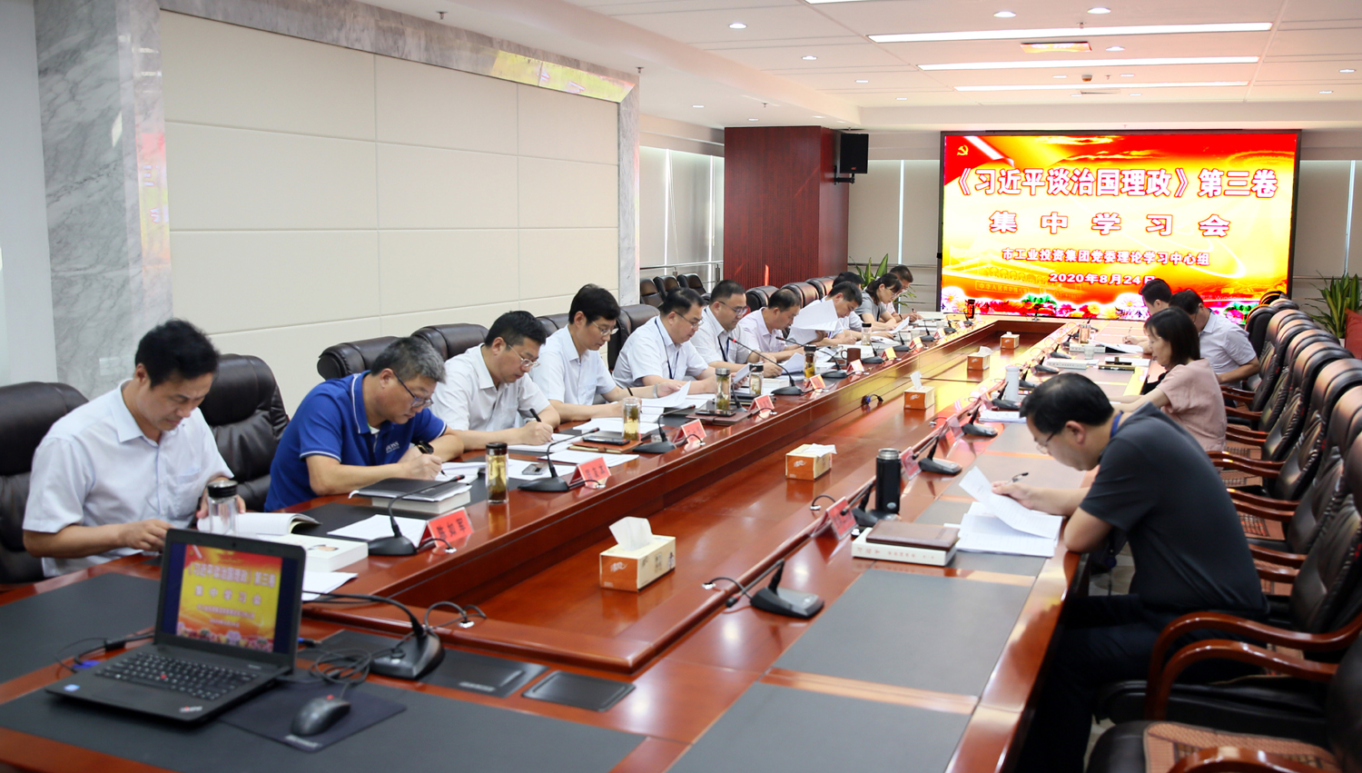 8月24日,集團(tuán)公司黨委理論學(xué)習(xí)中心組召開集中學(xué)習(xí)會(huì),專題學(xué)習(xí)《習(xí)近平談治國理政》第三卷。黨委書記、董事長楊龍主持學(xué)習(xí)會(huì)。