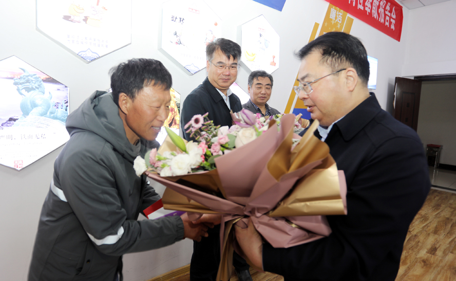 集團公司領導進基層、到一線,與勞模先進面對面交流,傾聽他們的心聲和意見,感謝他們長期以來為企業(yè)發(fā)展作出的貢獻,并獻上一束鮮花、送上一封慰問信、發(fā)放一張蛋糕卡、特制一張健康卡、送上一份祝福。
