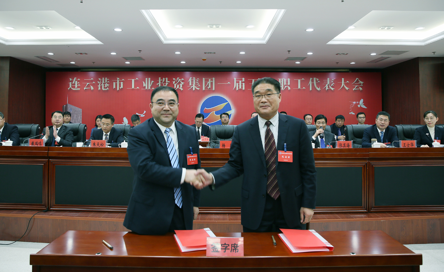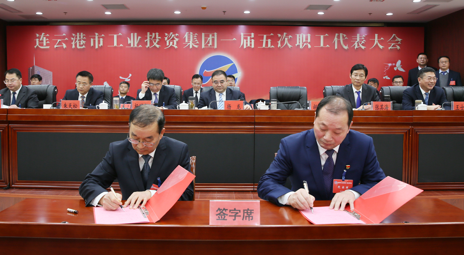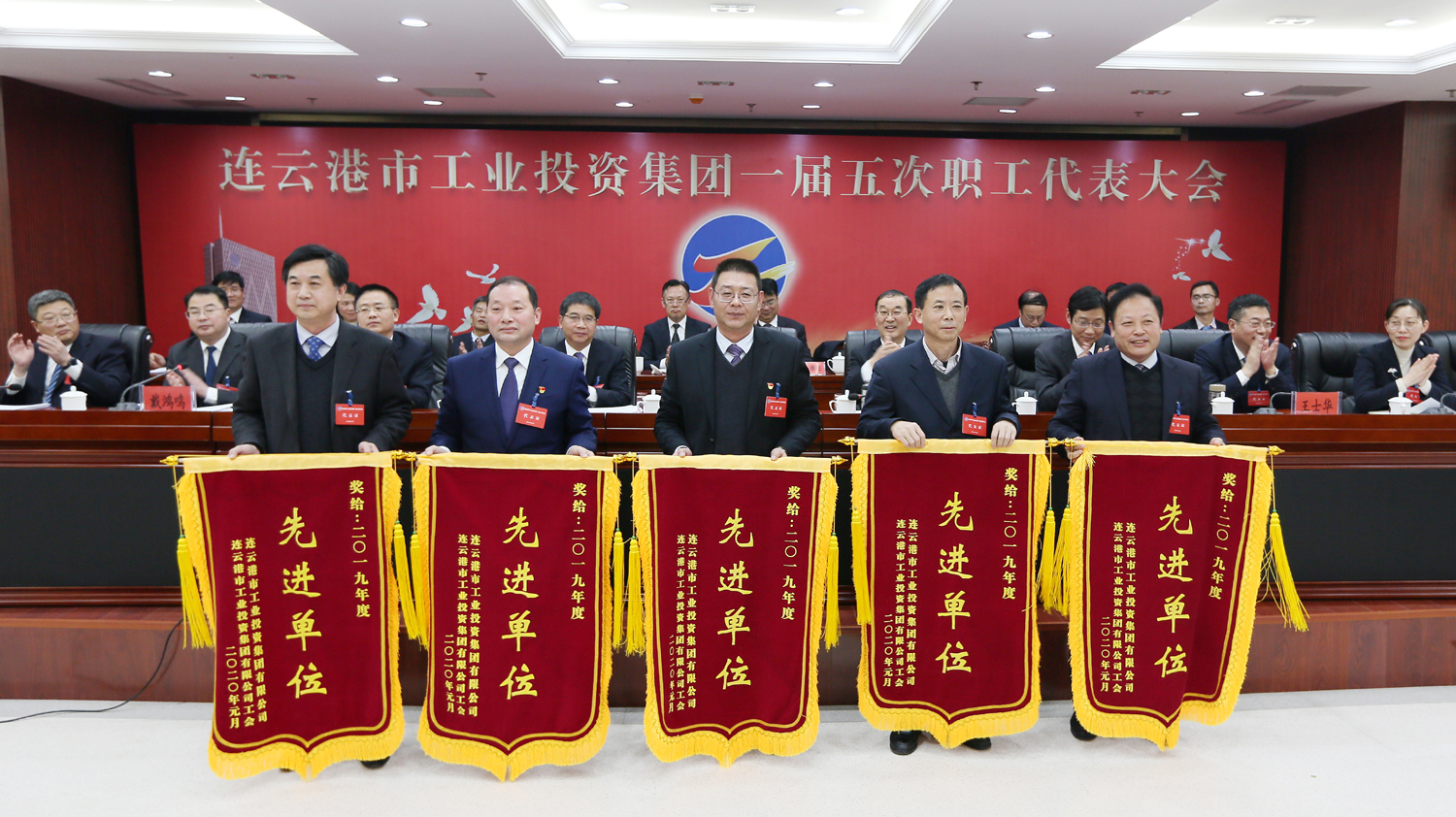 藍(lán)圖繪就,正當(dāng)揚(yáng)帆破浪;重任在肩,更須策馬揚(yáng)鞭。1月14日上午9時(shí),在雄壯的國歌聲中,集團(tuán)公司一屆五次職工代表大會在總部隆重召開,來自各條戰(zhàn)線的職工代表肩負(fù)全體工投人的重托,齊聚一堂,共商企業(yè)發(fā)展大計(jì)。黨委書記、董事長楊龍作講話,總經(jīng)理胡建明作工作報(bào)告。黨委副書記戴鴻鳴、工會主席劉承志分別主持大會。集團(tuán)公司領(lǐng)導(dǎo)楊國新、張其海、朱天松、王士華、汪群、匡友本、陳如軍在主席臺前排就座。