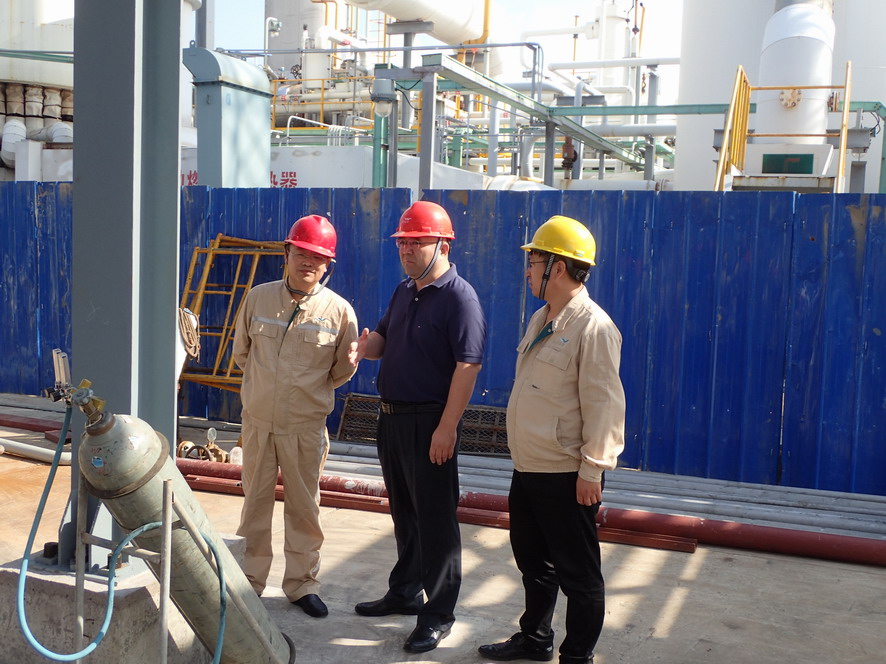 楊龍一行實地查看了氯堿公司氫氣純化技改項目、天然氣制氫壓縮機廠房現(xiàn)場和氨綸公司精制罐區(qū)、危廢庫等重點區(qū)域,就相關設備運行、安全防范情況進行詳細了解。楊龍強調(diào),新中國成立70周年即將到來,要把安全工作當成一項重要的政治任務,認真做好各個重點部位、關鍵裝置等環(huán)節(jié)的排查和治理,提高專業(yè)化水平,做到立行立改。要提高安全生產(chǎn)意識,認真落實好安全檢查、節(jié)假日應急管理和值班制度,強化對設備的檢查維護和隱患整改,確保節(jié)日期間安全生產(chǎn)平穩(wěn)運行。