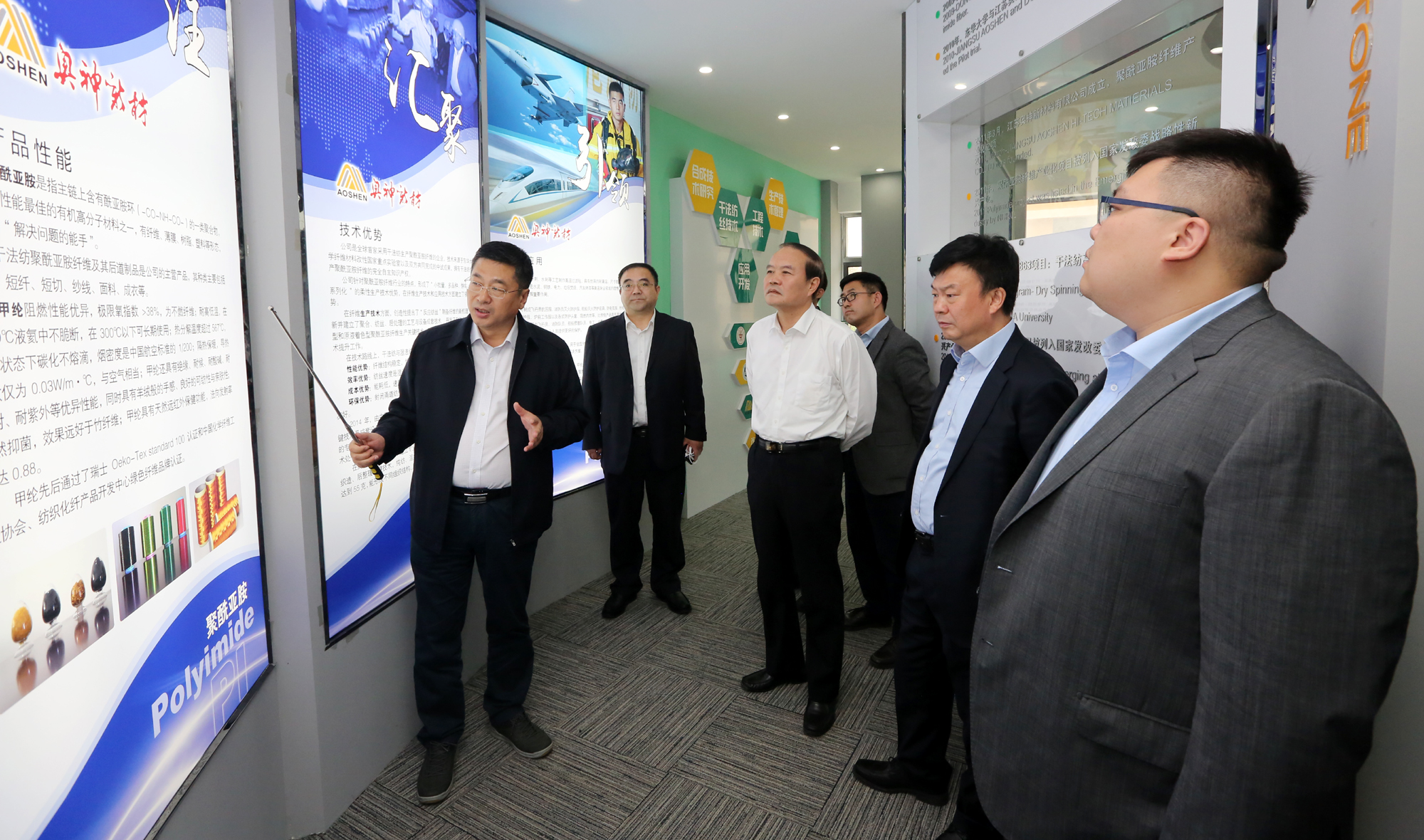 10月24日下午,中信產(chǎn)業(yè)投資基金管理有限公司總裁田宇一行在連云港市副市長(zhǎng)尹哲強(qiáng)的陪同下在集團(tuán)奧神新材料、氨綸公司考察調(diào)研,并與集團(tuán)公司董事長(zhǎng)、黨委書(shū)記楊龍就雙方合作事宜進(jìn)行了深入洽談、全面對(duì)接。
