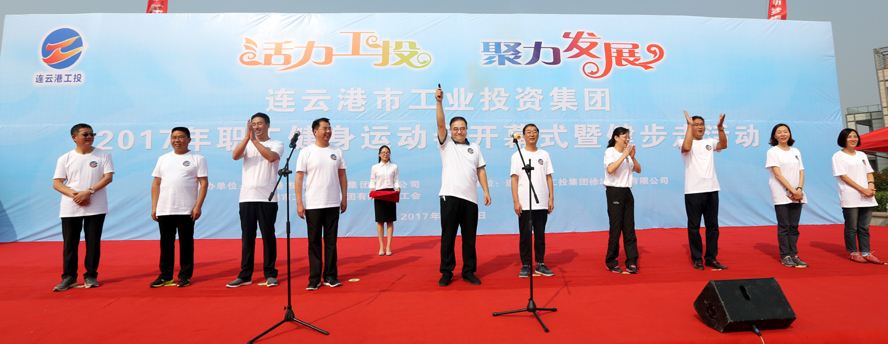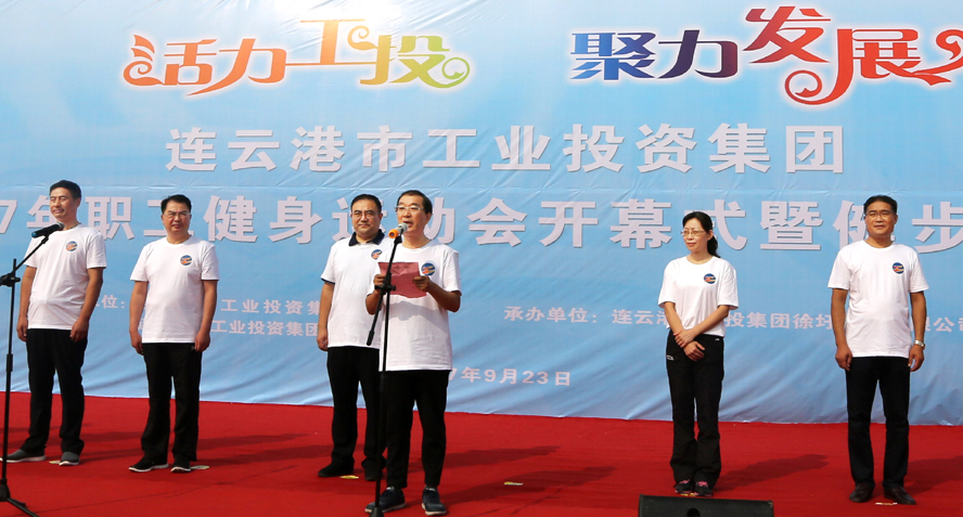 金秋九月,天藍氣清。為豐富職工業(yè)余文化生活,展示職工健康文明、積極向上的精神面貌,9月23日上午,集團公司2017年職工健身運動會開幕式暨健步走活動在徐圩新區(qū)云湖廣場隆重舉行。集團公司董事長、黨委書記楊龍宣布運動會開幕,并為健步走活動發(fā)令??偨浝砗髦麻_幕詞,工會主席戴鴻鳴主持開幕式。