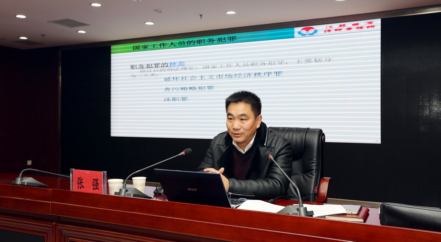 為進一步幫助廣大干部職工筑牢思想道德防線,預防職務犯罪,12月28日上午,集團公司舉行廉潔履職警示教育專題報告會,邀請江蘇田灣律師事務所副主任張強作廉潔履職專題報告。集團公司領導班子成員,各單位領導班子成員、三級法人單位黨政負責人、集團總部全體管理人員參加報告會。