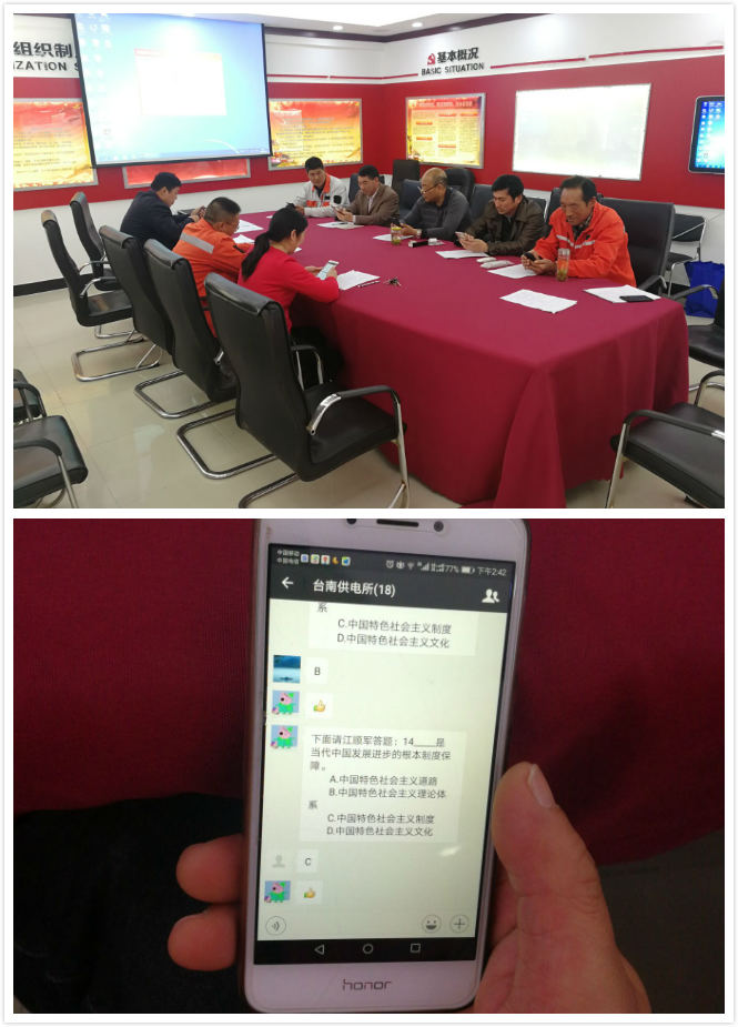4月10日下午,臺南供電所全體黨員靜坐在會(huì)議桌旁,每人拿著一部手機(jī),進(jìn)行著一場特殊的考試。近年來,該所黨支部積極響應(yīng)公司黨委創(chuàng)新黨員教育管理舉措,利用微信公眾平臺,開展“掌上黨課”和“指尖上廉政教育”活動(dòng),學(xué)習(xí)黨的十九大精神,進(jìn)行黨紀(jì)黨規(guī)知識測試,實(shí)現(xiàn)隨時(shí)、隨地、隨身,提升了學(xué)習(xí)教育成效。(劉繼美)