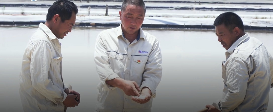烈日之下,汗水也閃爍著光芒。在日曬制鹽埒南分公司十一班,筆者看到工人們正在火毒毒的烈日下修補(bǔ)塑布,盡管已經(jīng)錯開相對高溫時(shí)間上班,但仍避免不了頭頂太陽烤、腳下鹵水蒸,個(gè)個(gè)都像剛從水里出來一樣,渾身上下沒有一點(diǎn)干的地方?!疤鞖膺@么熱吃得消嗎?”筆者問班長章保衛(wèi)。“習(xí)慣了,不礙事?!彼镀鹨陆竽艘话涯樕咸氏聛淼暮顾疂M不在乎地說:“眼下正值雨季,戰(zhàn)高溫、搶睛天,防雨抗災(zāi)頭等大事,不這樣苦干不行啊?!薄叭戤a(chǎn)鹽任務(wù)能完成?”“只要不遭受大的自然災(zāi)害,完成年計(jì)劃沒問題!”他回答得干脆,也很自信。