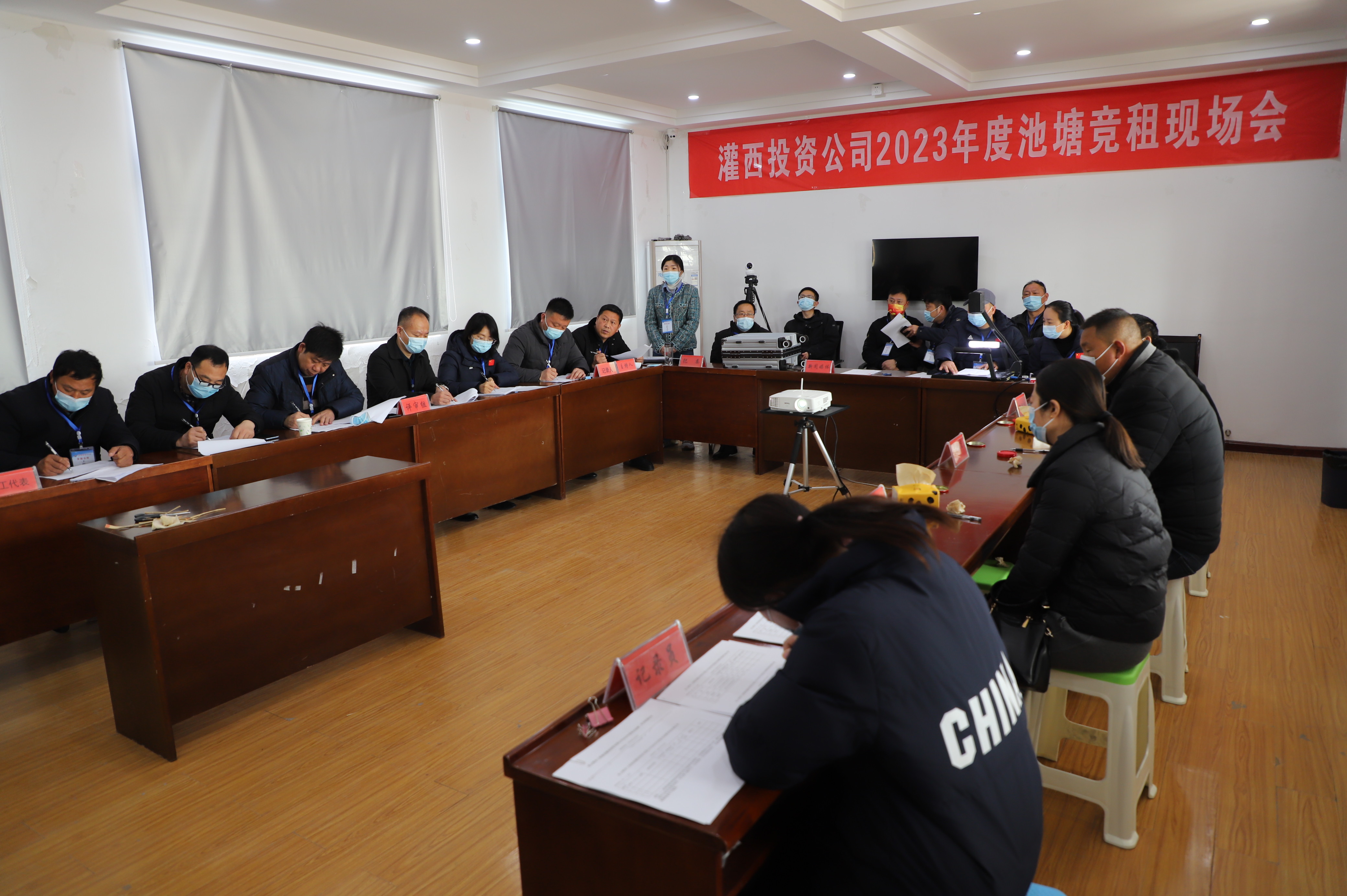 3月25日,灌西投資公司在綜合服務(wù)中心三樓會(huì)議室舉行了2023年度水產(chǎn)養(yǎng)殖池塘競(jìng)租現(xiàn)場(chǎng)會(huì),對(duì)灌西投資公司及西旺公司23個(gè)號(hào)段5300余畝池塘進(jìn)行公開競(jìng)租,取得圓滿成功。