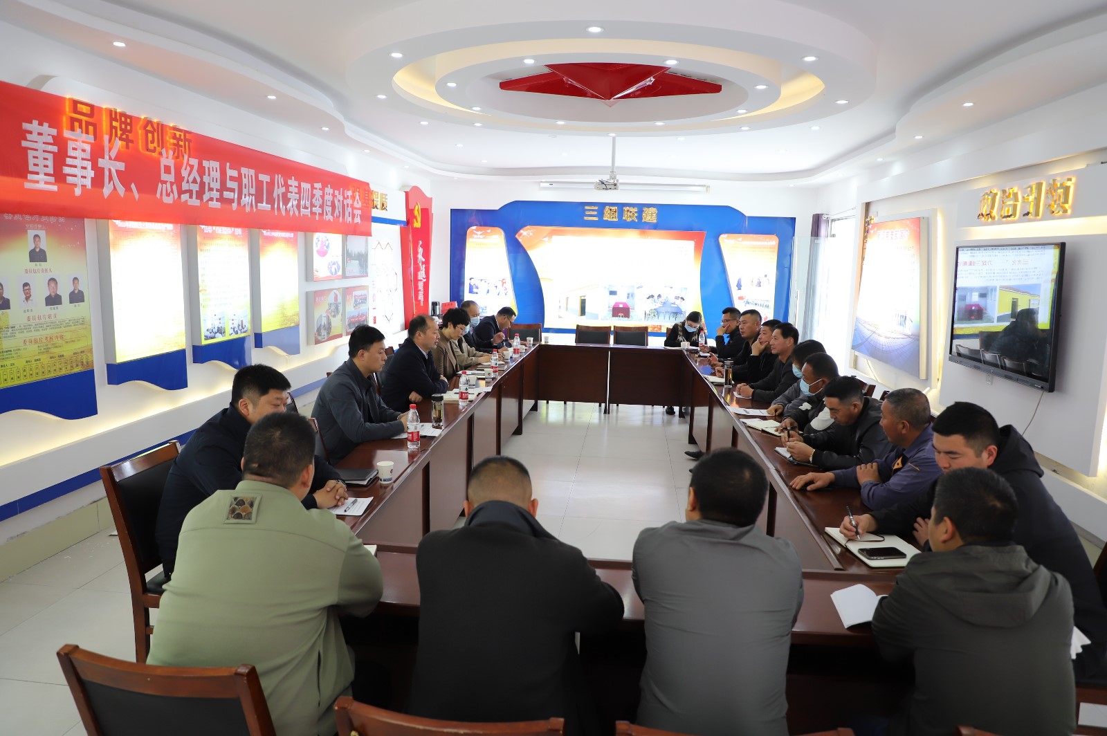 2022年11月3日下午,職工代表與公司董事長、總經(jīng)理齊聚一堂,就生產(chǎn)生活中遇到的問題提建議、獻良策。