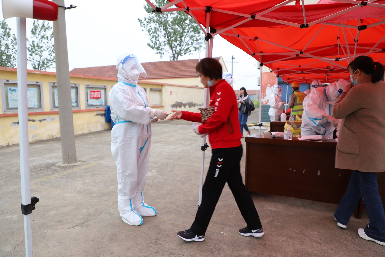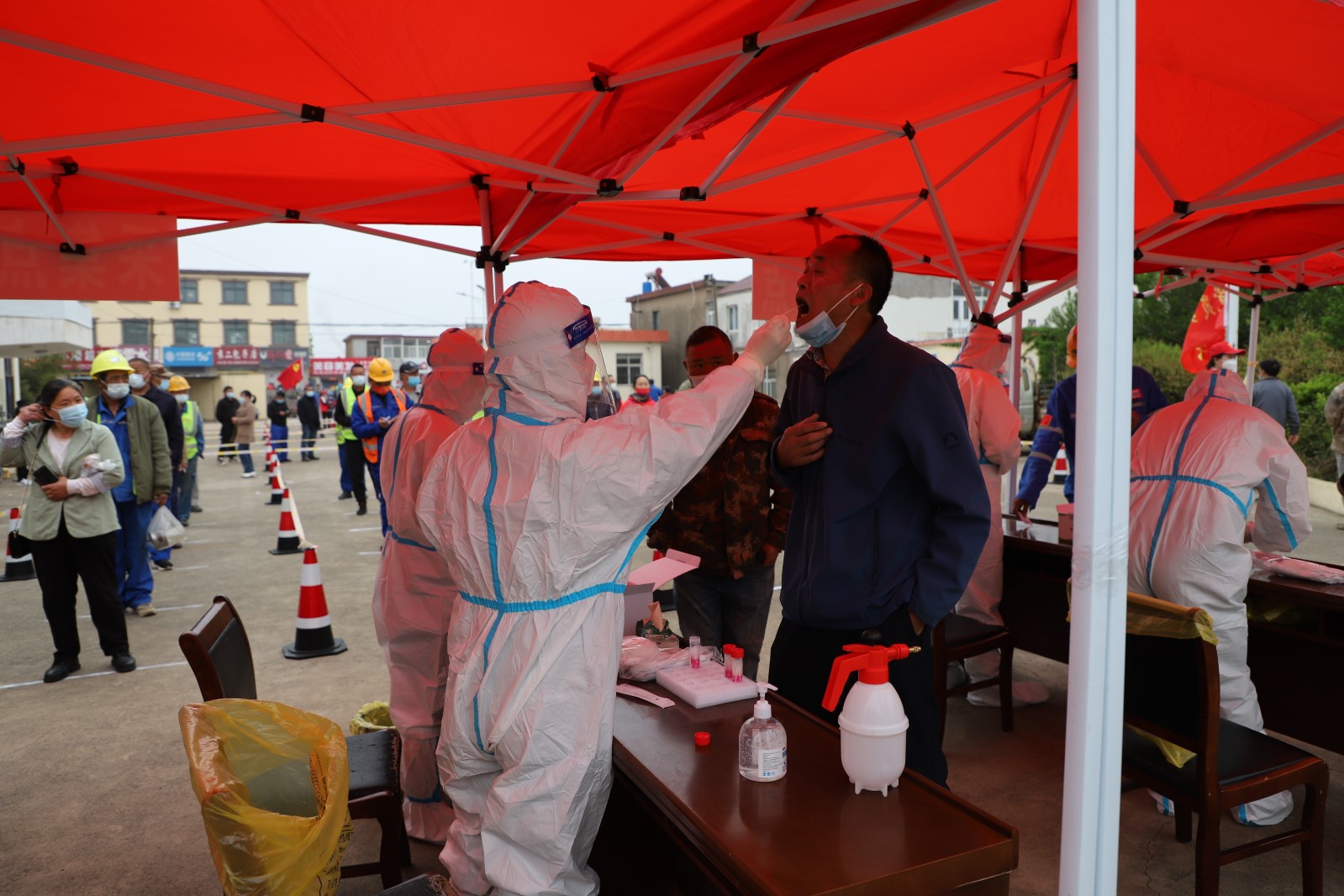 為了配合做好這一輪的全民核酸檢測(cè)工作,從核酸檢測(cè)前期的場(chǎng)地準(zhǔn)備到居民隊(duì)伍的秩序維持,從協(xié)助醫(yī)護(hù)人員做好消毒、信息錄入到現(xiàn)場(chǎng)管理,灌西投資公司廣大志愿者奮勇上前,全過程參與其中。由于之前天氣有雨,早在凌晨3點(diǎn)多鐘,公司志愿者們就來(lái)到現(xiàn)場(chǎng)部署核酸檢測(cè)場(chǎng)地,及時(shí)做好設(shè)置隔離區(qū),劃出一米線等工作,確保了早上5點(diǎn)半點(diǎn)準(zhǔn)時(shí)開始檢測(cè)。