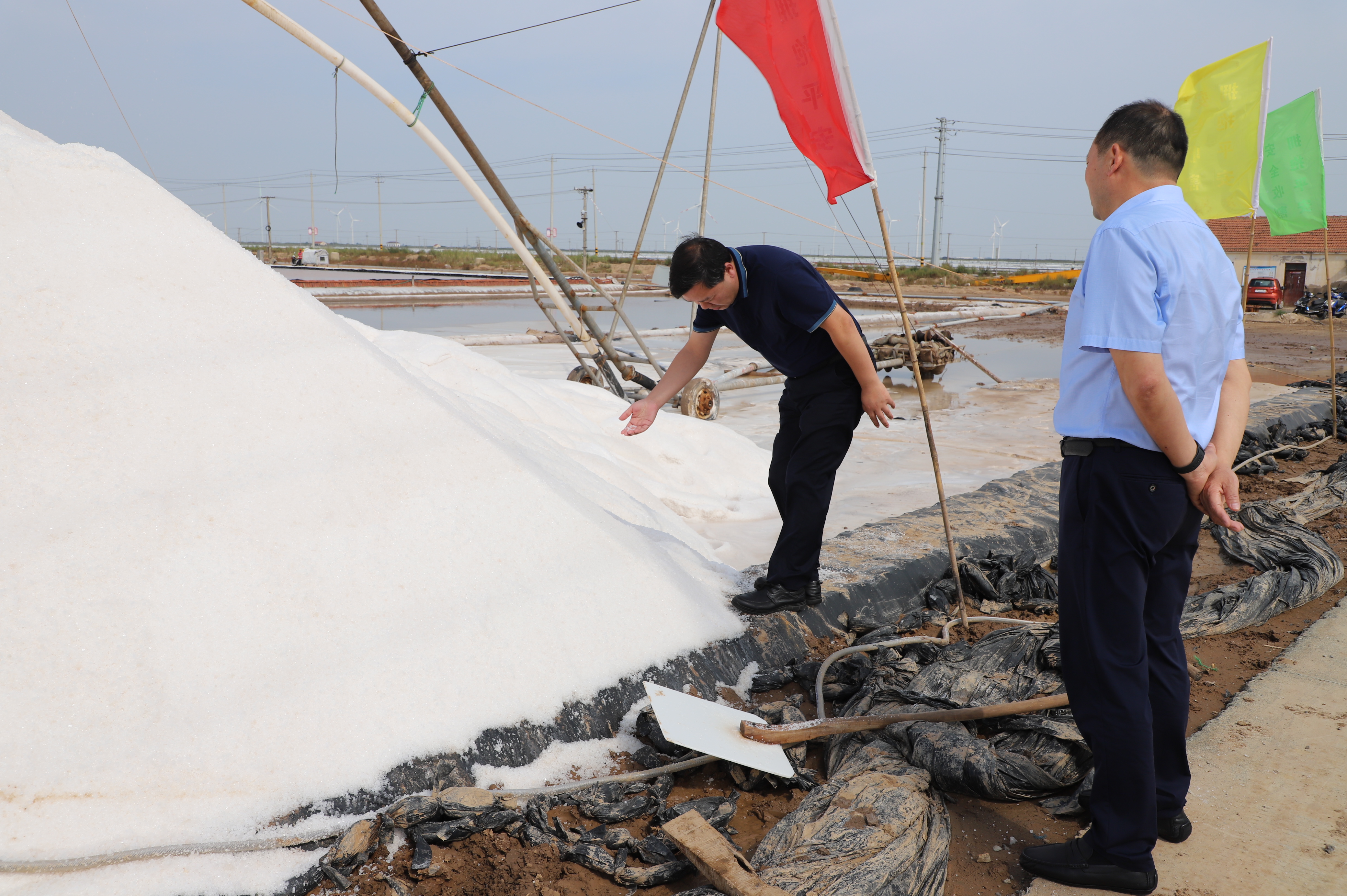 調研組一行先到新河十三班參觀現場扒鹽,李國文董事長向調研組一行介紹了目前日曬制鹽公司采用的帶鹵扒鹽技術,并就目前鹽業(yè)生產、運輸、銷售等情況進行了簡單的介紹。