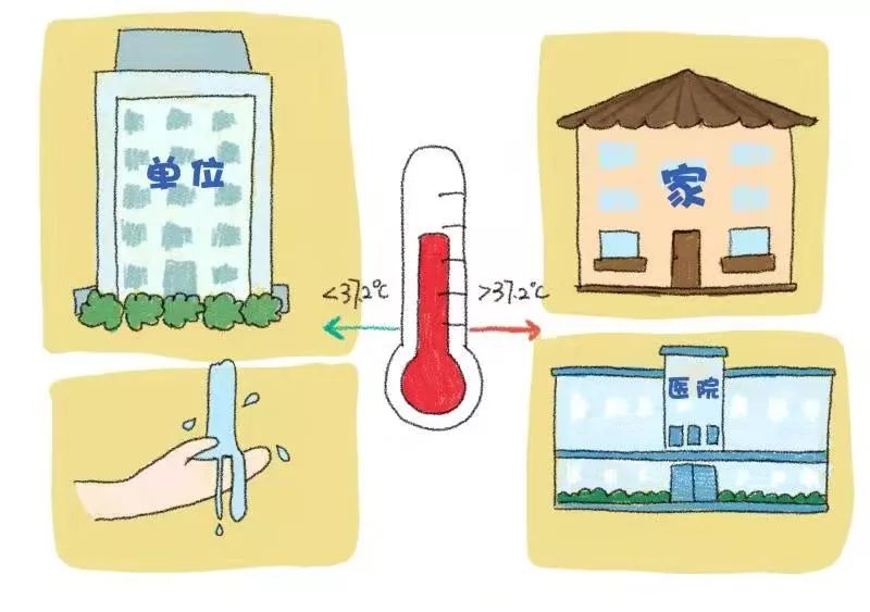 進(jìn)入辦公樓前自覺接受體溫檢測,體溫正??扇霕枪ぷ?,并到衛(wèi)生間洗手。若體溫超過37.2℃,請勿入樓工作,并回家觀察休息,必要時(shí)到醫(yī)院就診。
