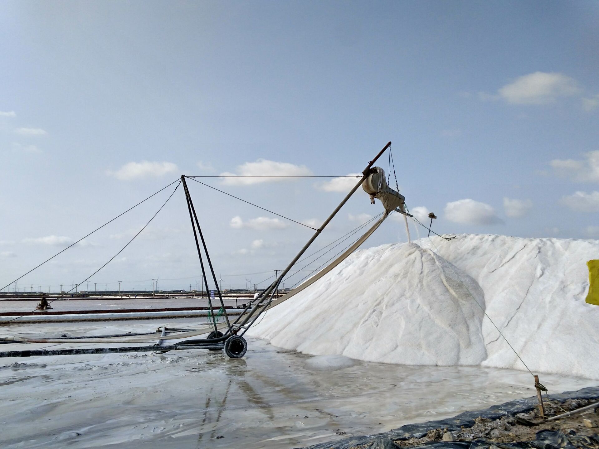 10月6日,在日曬制鹽新河分公司十班,幾名鹽工在不遠(yuǎn)處鹽池內(nèi)整理扒過鹽的格塊,一臺唐三零機(jī)械正在最后一塊鹽池內(nèi)緩緩移動集鹽,鹽泵運(yùn)轉(zhuǎn)不停,輸送鹽上廩,一條鹽廩即將筑成。在國慶假日期間,日曬制鹽公司值班人員不脫崗、生產(chǎn)經(jīng)營不斷線、鹽業(yè)生產(chǎn)不停歇,入秋以來,已扒鹽5萬噸,為公司的國慶假日增添了道道靚麗的風(fēng)景。