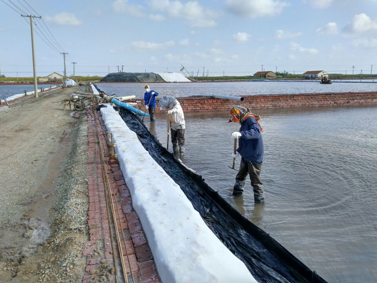 國慶假日前兩天的連天雨,讓大家好不容易盼來的七天長假打了折扣,人們走親訪友出行旅游都帶來了不便,七十多毫米的降雨量也影響到了公司鹽業(yè)生產(chǎn),廣大員工堅守崗位值好班。生產(chǎn)服務(wù)人員24小時觀察天氣狀況,跟蹤分析發(fā)布天氣預(yù)報,指導(dǎo)生產(chǎn),各班組鹽工堅守崗位,加強(qiáng)塑池管理,檢查排淡口門,及時排出淡水。3號天氣轉(zhuǎn)好,廣大鹽工及時收布,整理塑池,轉(zhuǎn)換到正常生產(chǎn)管理中來。同時,啟動扒鹽工作,安裝機(jī)泵管道,調(diào)配扒鹽鹵水,嚴(yán)格執(zhí)行安全扒鹽操作規(guī)程,3日晚開始投入到正常的扒鹽中來。鹽灘上勞作的鹽工在一條條潔白的鹽廩襯映下格外美麗。(季興勝)
