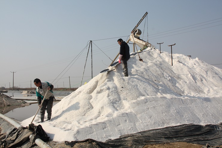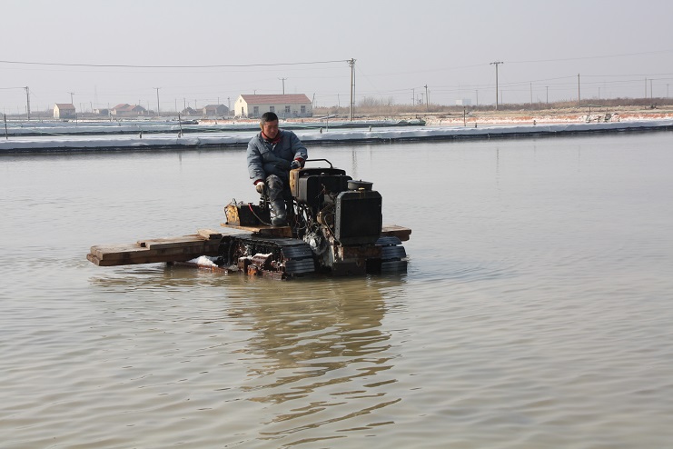 日前,筆者在走訪日曬制鹽公司時(shí)看到,在埒南制鹽分公司七班的鹽池內(nèi),一臺(tái)“唐三零”扒鹽機(jī)正在進(jìn)行扒鹽工作,池埝上機(jī)泵運(yùn)作時(shí)的轟鳴聲回蕩在鹽灘上,標(biāo)志著日曬制鹽公司今年的春扒戰(zhàn)役正式打響。
