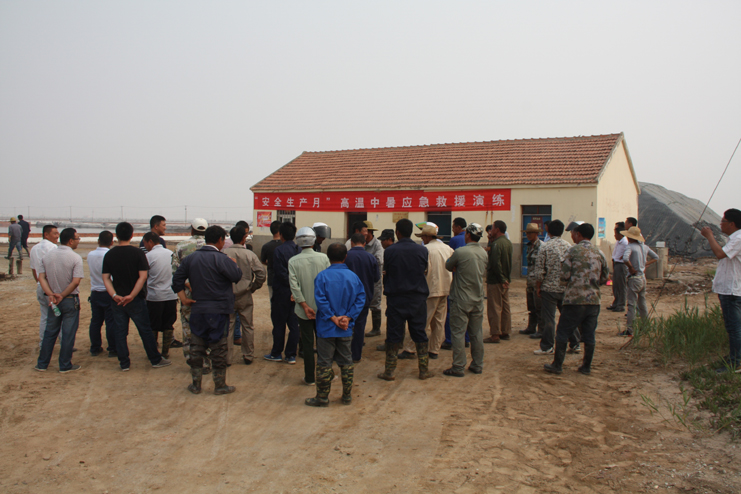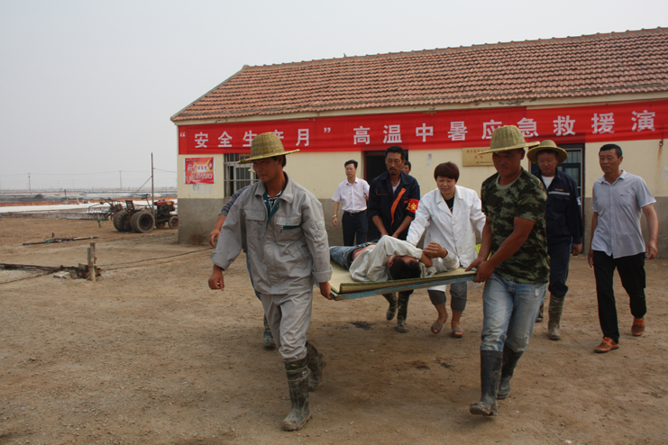為了加強(qiáng)公司全員的安全預(yù)防意識(shí),增強(qiáng)應(yīng)對(duì)緊急事件的自我保護(hù)和防衛(wèi)能力, 6月29日上午,灌西投資公司在新河制鹽分公司九班聯(lián)合舉行“高溫中暑應(yīng)急救援演練”活動(dòng),公司副總經(jīng)理古浩光、各單位分管安全領(lǐng)導(dǎo)、日曬制鹽一線班組長(zhǎng)參加觀摩。