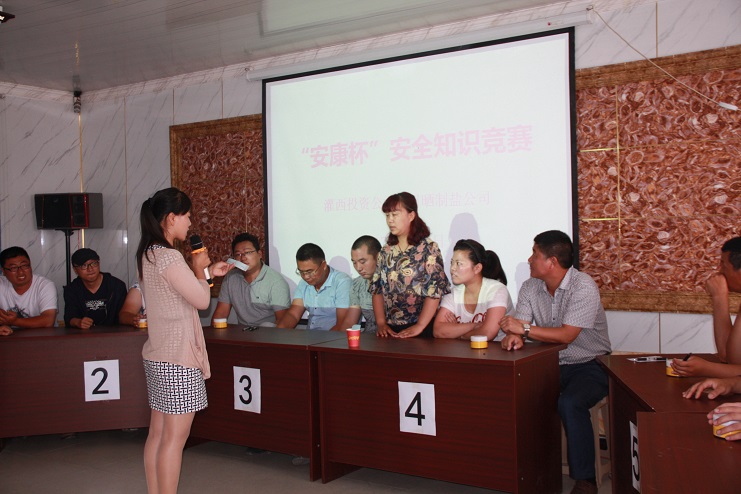 為全面落實企業(yè)安全生產(chǎn)主體責(zé)任,進一步深化“安全生產(chǎn)月”活動,7月3日,灌西投資公司在生產(chǎn)服務(wù)公司會議室舉辦安全知識競賽活動,來自各單位的代表隊27人參加比賽,公司副總經(jīng)理古浩光及日曬制鹽公司的管理人員、班組長觀看比賽。