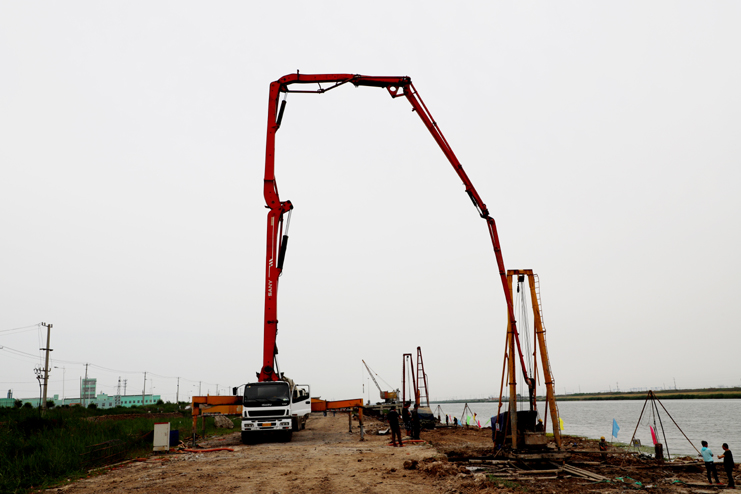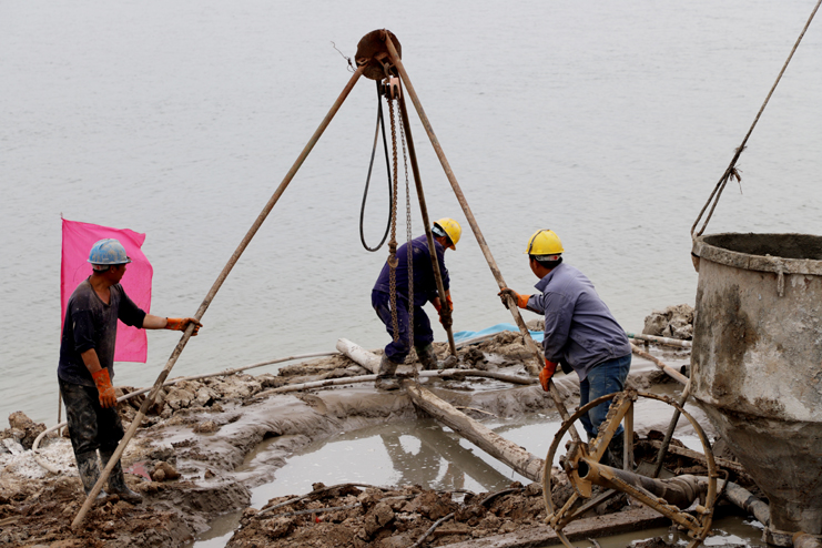 5月30日下午,藍(lán)色的天空沒(méi)有一絲云彩,火熱的太陽(yáng)炙烤著大地。在灌西投資公司五灌河碼頭擴(kuò)建項(xiàng)目建設(shè)工地,施工人員正在各司其職的工作著,有的在使用電鋸,有的在壓鋼筋,還有的在焊接鋼筋框架。遠(yuǎn)處一臺(tái)混凝土澆灌機(jī)在進(jìn)行混凝土澆灌作業(yè),碼頭岸邊大小打樁機(jī)器一字排開,筆者親身感受五灌河碼頭二期工地開發(fā)建設(shè)的火熱場(chǎng)面。