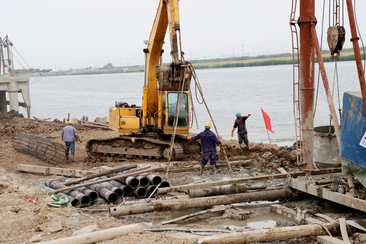 五灌河碼頭二期工程從5月16日施工以來(lái),已經(jīng)完成樁基24根,平整場(chǎng)地30%以上,在180米長(zhǎng)、20米寬的河岸邊,已經(jīng)完成了18000方土方工程量。工程項(xiàng)目組干部員工為了保障五灌河碼頭二期工程安全有序的在工期內(nèi)完成碼頭建設(shè),統(tǒng)一思想,分工協(xié)作,任務(wù)到人,搶進(jìn)度,保目標(biāo),激發(fā)廣大員工的積極性和主動(dòng)性,力爭(zhēng)二季度完成工程量的75%,確保碼頭下半年全面投入運(yùn)營(yíng)。(張明建)