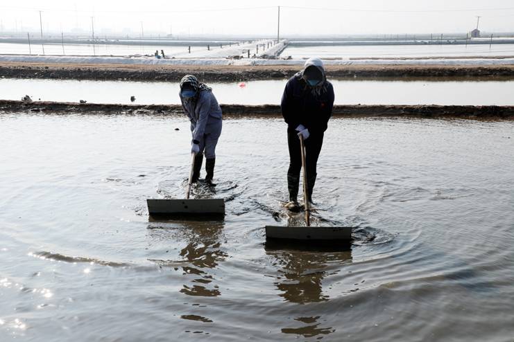 強化鹵水提制。密切關(guān)注天氣變化,緊緊抓住小滿前后的有利天時,科學(xué)安排走水線路,提高蒸發(fā)量的利用率。通過四輪壓格機器反復(fù)壓制整治滲漏池板,減少池板的鹵水滲漏。強化“三雨”操作,嚴格的塑池管理,加強塑布更新和修補,嚴控跑冒滴漏。提高公司灘地綜合利用率,充分利用廩基、排淡溝道等有效面積,利用高濃度淋板水,小鹽化鹵等窮制鹵措施,提制飽和鹵水,提升制鹵量。大力推廣應(yīng)用先進的制鹵工藝,保障產(chǎn)出高質(zhì)的海水鹵。