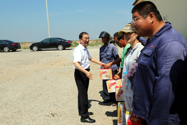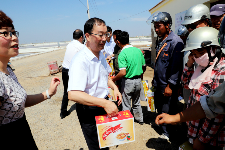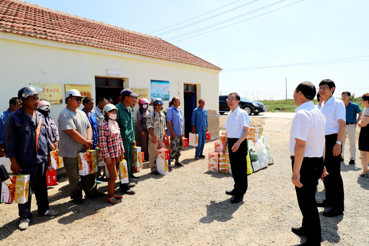 入伏以來(lái),持續(xù)高溫,為確保一線生產(chǎn)單位工作順利開(kāi)展,保證員工身體健康。7月18日上午,集團(tuán)公司總經(jīng)理胡建明、副總經(jīng)理張其海一行深入日曬制鹽公司走訪慰問(wèn)一線職工,把綠豆、飲料等慰問(wèn)品送到他們手中,在炎炎夏季,為一線職工送去集團(tuán)公司領(lǐng)導(dǎo)的深切關(guān)懷與陣陣清涼。