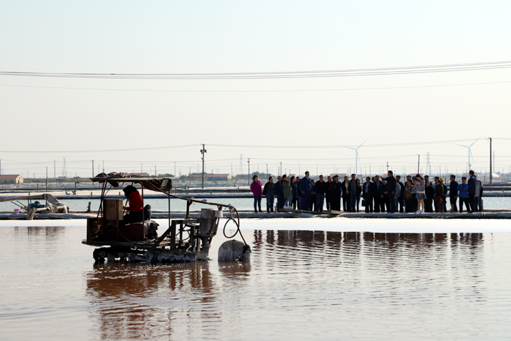 參觀團(tuán)首先參觀了日曬制鹽公司扒鹽現(xiàn)場,在參觀過程中,聽取了相關(guān)情況的介紹,了解了原鹽的生產(chǎn)發(fā)展演變,參觀感受了現(xiàn)代化帶鹵扒鹽生產(chǎn)場景;隨后,參觀團(tuán)一行參觀了新河制鹽的黨建室和創(chuàng)新勞模工作室。通過參觀,他們一致表示我公司的黨建室給他們留下了深刻印象,尤其是發(fā)揮勞模創(chuàng)新工作室示范引領(lǐng)作用的做法對他們開展黨建工作有較好的啟示。(張明建)