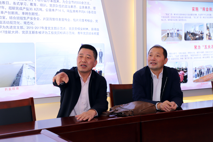 檢查組一行先后到新河制鹽分公司、老機關(guān)新建黨建室進(jìn)行實地檢查驗收,在新河制鹽分公司黨建活動室,江舜軍部長一行詳細(xì)聽取了該黨支部書記李加新對黨建工作的匯報,隨后,在老機關(guān)綜合黨員活動中心,檢查組一行利用活動室電子顯示屏觀看了集團(tuán)司歌視頻。