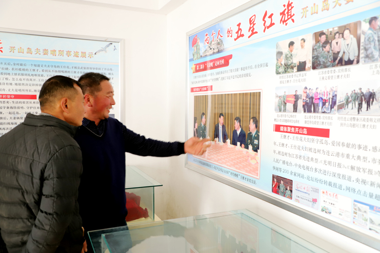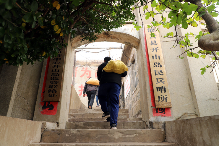 上午8點(diǎn),在發(fā)動(dòng)機(jī)巨大的轟鳴聲中,漁船緩緩駛離港口。近一個(gè)小時(shí)的顛簸,開(kāi)山島出現(xiàn)在了視野里,由小到大,逐漸清晰。簡(jiǎn)易碼頭上,守島民兵遠(yuǎn)遠(yuǎn)地沖著大家揮手,船上的人顧不上漁船的劇烈晃動(dòng),一個(gè)個(gè)扒著船沿?zé)崆榛貞?yīng)著,所有人的臉上都寫(xiě)滿敬意和期待。漁船隨著海浪的節(jié)拍上下晃動(dòng)著,班組長(zhǎng)們登上碼頭,就緊緊握住守島民兵的手,對(duì)他們守島衛(wèi)國(guó),無(wú)怨無(wú)悔堅(jiān)守和付出的愛(ài)國(guó)奉獻(xiàn)精神表示欽佩。班組長(zhǎng)們跟隨著守島民兵沿著王繼才夫婦他們當(dāng)年的巡邏路線,拾級(jí)而上,大家一邊感受巡島爬山的辛苦,一邊聆聽(tīng)著守島民兵講解王繼才夫婦32年守島的艱難困苦和生離死別。