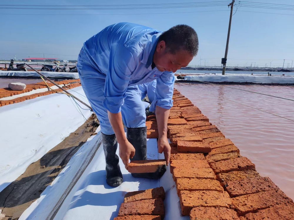 鏖戰(zhàn)酷暑,保目標(biāo)。當(dāng)前,正是原鹽生產(chǎn)的關(guān)鍵時(shí)期,面對(duì)高溫酷暑的嚴(yán)重考驗(yàn),該公司干部職工迎難而上,戰(zhàn)高溫斗酷暑、搶晴天保生產(chǎn),全力投入到高溫生產(chǎn)、保鹽保鹵等工作中,及時(shí)修補(bǔ)塑布,加強(qiáng)塑布收放系統(tǒng)維護(hù)保養(yǎng),隨時(shí)做好拉塑布準(zhǔn)備工作;管理人員以上率下,實(shí)施24小時(shí)現(xiàn)場(chǎng)值班機(jī)制,強(qiáng)化除硫制鹽工藝,抓實(shí)抓細(xì)原料鹵水、結(jié)晶池等源頭過程管控,確保全年產(chǎn)鹽60萬(wàn)噸。驕陽(yáng)烈日下,萬(wàn)畝銀灘鹵水潺潺、“五彩斑斕”,產(chǎn)業(yè)工人在39℃高溫的戶外勞作,在熱氣蒸人的鹵水鹽田里,揮汗如雨,構(gòu)成了一幅最美的“鹵上芭蕾”。(許東彥)