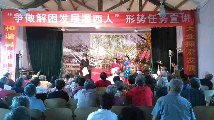 為豐富社區(qū)居民的業(yè)娛文化生活,社區(qū)淮海戲劇團文藝宣傳隊開展迎國慶送戲到社區(qū)活動,分別于9月29日下午和晚間為社區(qū)居民送上了精彩紛呈的戲劇《珍珠塔》和《姐妹易嫁》,受到了社區(qū)居民群眾的熱烈歡迎和一致好評。(社區(qū)管理中心黨總支)