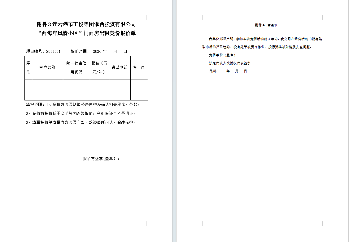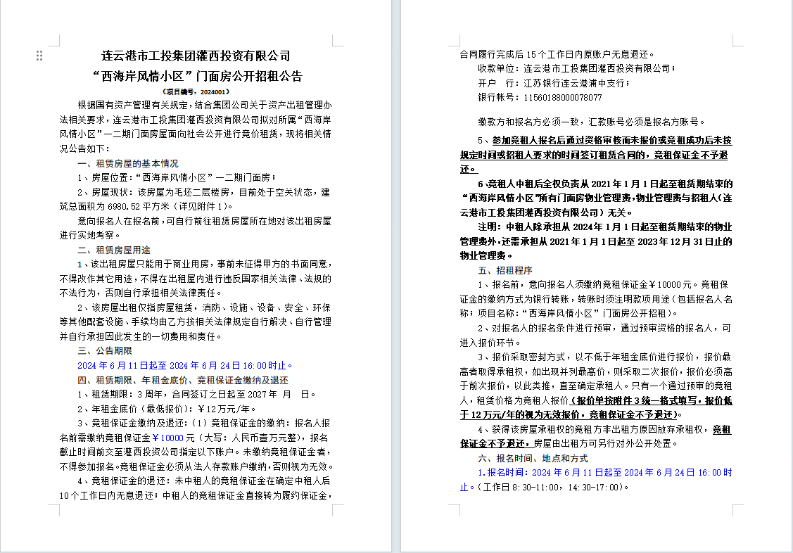 連云港市工投集團灌西投資有限公司“西海岸風情小區(qū)”門面房公開招租公告