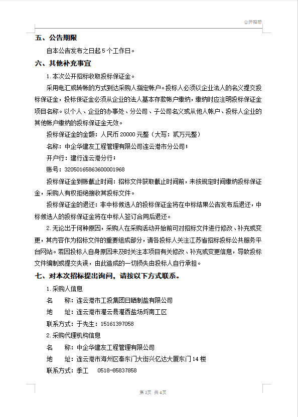 日曬制鹽公司 液體氯化鈣(鈣液)采購招標(biāo)公告
