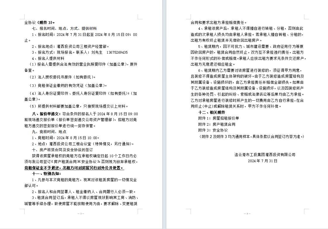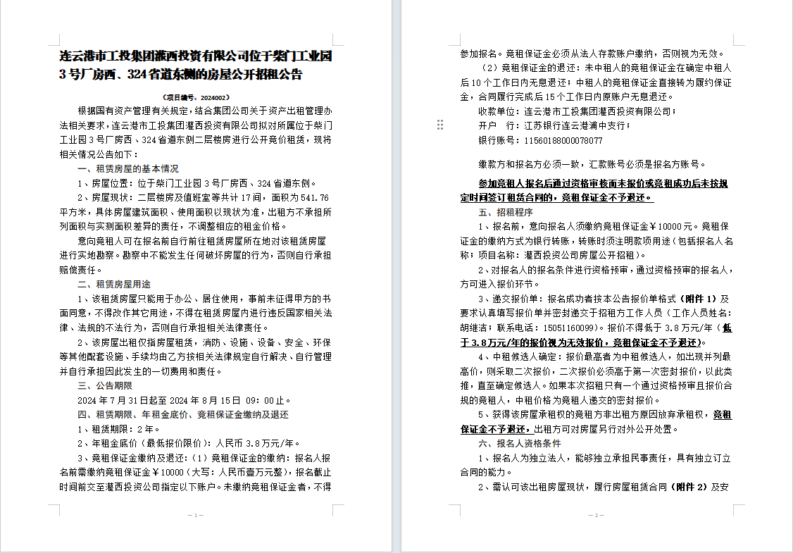 連云港市工投集團灌西投資有限公司位于柴門工業(yè)園3號廠房西、324省道東側(cè)的房屋公開招租公告