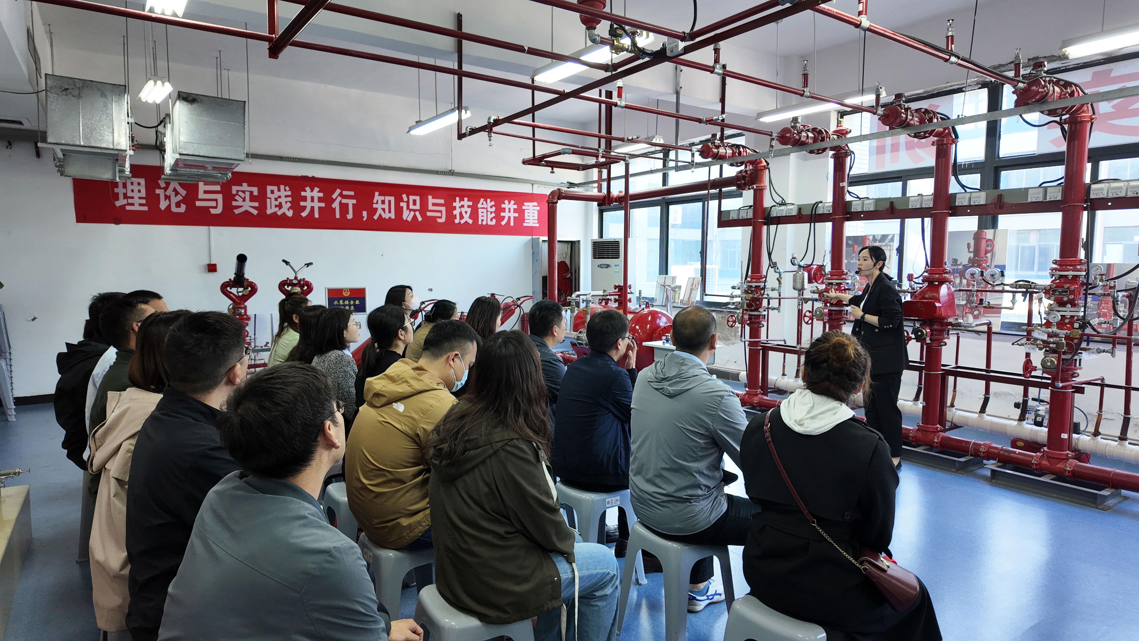 培訓(xùn)中,具有注冊(cè)消防工程師資質(zhì)的培訓(xùn)老師運(yùn)用理論授課、實(shí)地講解、多媒體互動(dòng)等多種教學(xué)方式,使參訓(xùn)職工快速了解并掌握建筑常見消防設(shè)施及消防器材的動(dòng)作原理和操作技能?!笆谌艘贼~,不如授人以漁。”在培訓(xùn)過程中,老師利用學(xué)校獨(dú)特的現(xiàn)場(chǎng)教學(xué)場(chǎng)景,針對(duì)九小場(chǎng)所“三合一”現(xiàn)象、違規(guī)違章動(dòng)火作業(yè)、常見電氣火災(zāi)隱患等實(shí)際問題進(jìn)行了深入剖析和講解,并重點(diǎn)強(qiáng)調(diào)了日常消防防范管理工作的程序和重點(diǎn),令大家受益匪淺。