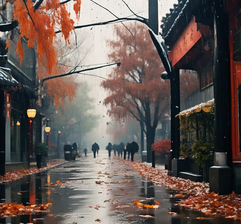 雨滴細(xì)密確冰冷而清澈,吹到臉上、手上,冷得刺骨。我連忙把衣服裹得更緊些,但這寒冷似乎已經(jīng)滲透到了骨子里。路上的人們行色匆匆,似乎都想盡快逃離這場(chǎng)雨。