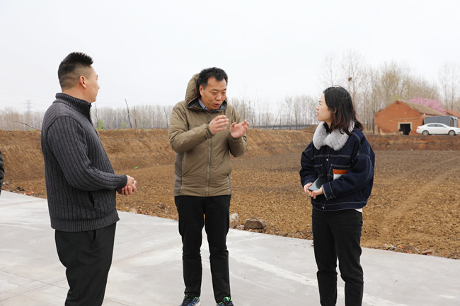 4月2日上午,冒著淅瀝瀝的春雨,青口公司副總經(jīng)理許太冬帶領樊家選、趙華兵兩位技術指導小組成員,來到海頭鎮(zhèn)龍河村新復墾的240畝土地現(xiàn)場,與結對聯(lián)建的龍河村村委成員熱切交流,為新復墾的土地發(fā)展規(guī)劃出謀劃策。