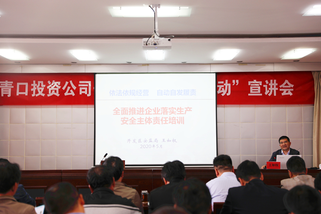 ? 為進(jìn)一步強(qiáng)化企業(yè)落實(shí)安全生產(chǎn)主體責(zé)任意識,推動企業(yè)深入學(xué)習(xí)貫徹《企業(yè)落實(shí)安全生產(chǎn)主體責(zé)任重點(diǎn)事項(xiàng)清單》,5月14日下午,青口投資公司組織召開安全生產(chǎn)“春風(fēng)行動”宣講會。公司領(lǐng)導(dǎo)班子成員、安委會成員、各單位黨政工負(fù)責(zé)人、安全管理人員和機(jī)關(guān)全體管理人員參加,副總經(jīng)理?xiàng)钍孛髦鞒帧?/span>