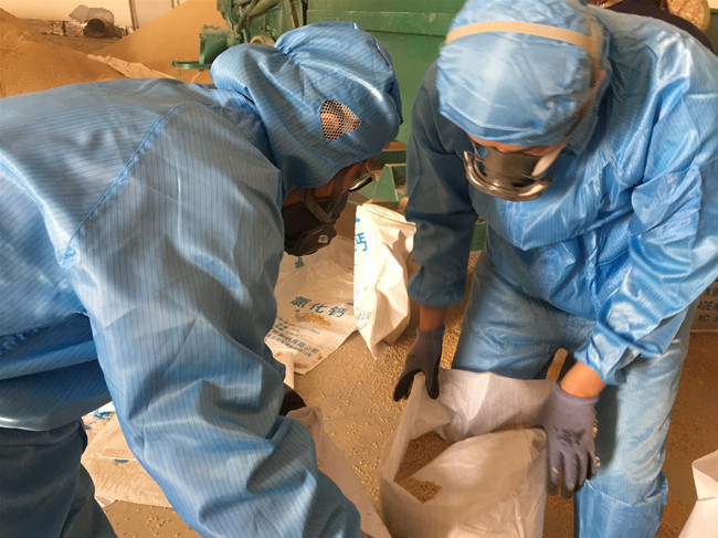 為確保大新農場秧苗育種工作的順利開展,米業(yè)營銷中心員工加班加點,篩選9108原種,經過多次除雜、過篩,為給條田工提供優(yōu)質的稻種。