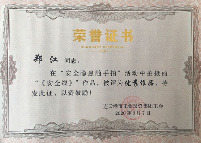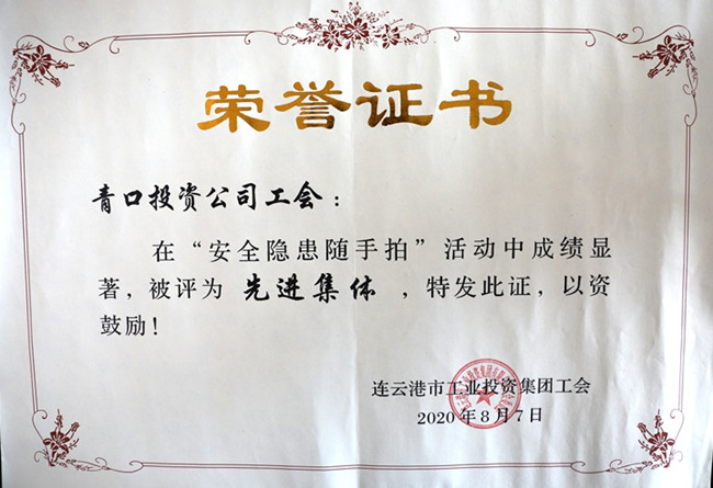 青口工會(huì)獲集團(tuán)公司“安全隱患隨手拍”活動(dòng)表彰