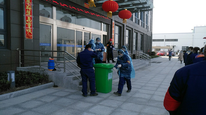 乙班班長封安帶領(lǐng)員工前往生產(chǎn)現(xiàn)場進行消殺,對發(fā)熱員工可能出入和接觸的工作現(xiàn)場、操作臺、更衣室、原輔材料、工具等進行徹底消毒。生產(chǎn)設備部王勇、王卉啟動調(diào)查程序,詢問其他員工,了解發(fā)熱員工行動軌跡和密切接觸情況。