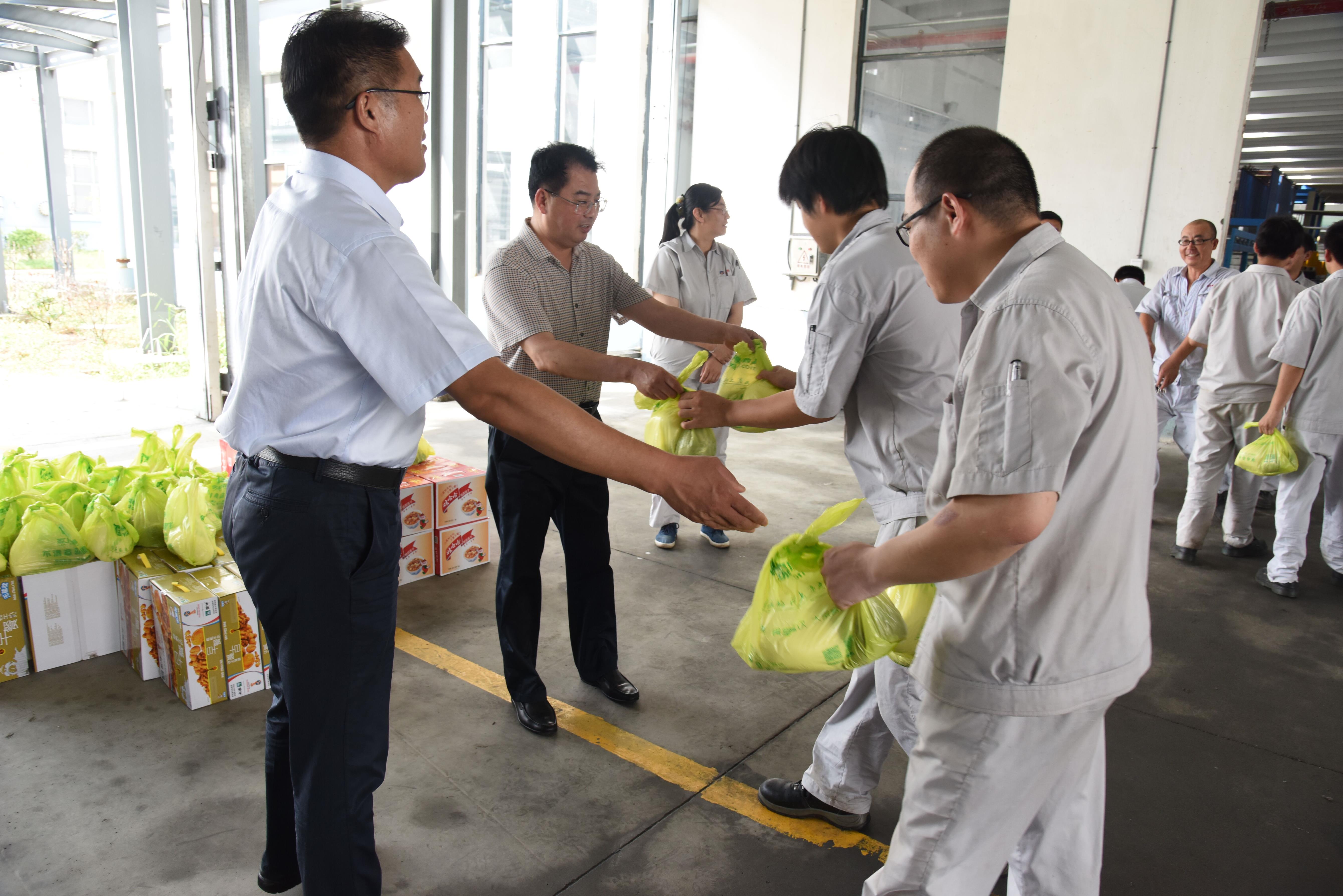 7月19日下午,集團(tuán)公司黨委副書記戴鴻鳴、工會(huì)主席劉承志一行不顧酷暑高溫,深入到神特公司生產(chǎn)一線,為職工送上了牛奶、綠豆等防暑降溫物品。戴鴻鳴書記詳細(xì)詢問(wèn)了生產(chǎn)經(jīng)營(yíng)管理及職工的生產(chǎn)、生活等情況;同時(shí)督促神特公司要進(jìn)一步落實(shí)防暑降溫政策,切實(shí)維護(hù)職工的健康權(quán)益。