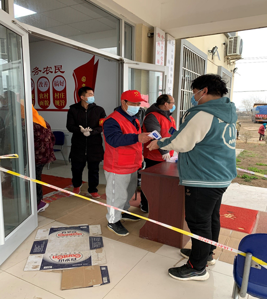 公司員工范益楊、李夢(mèng)達(dá)是集團(tuán)抗疫志愿隊(duì)的隊(duì)員。在冷冽寒風(fēng)中,他倆身穿防護(hù)服挨家挨戶通知商戶暫停營(yíng)業(yè),同樣的通知話語(yǔ)不厭其煩的重復(fù)著一遍又一遍,說(shuō)得口干舌燥、疲憊不堪也未能阻攔他們繼續(xù)前進(jìn)的腳步。