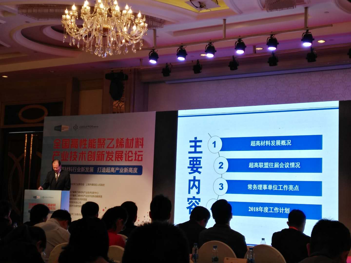 3月27日-29日,神特公司受邀參加由上?;ぱ芯吭河邢薰?、全國超高分子量聚乙烯材料產(chǎn)業(yè)技術(shù)創(chuàng)新戰(zhàn)略聯(lián)盟、全國超高分子量聚乙烯材料產(chǎn)業(yè)技術(shù)創(chuàng)新中心、上海張江高新區(qū)普陀園長風科技園、聚烯烴催化技術(shù)與高性能材料國家重點實驗室聯(lián)合主辦的2018全國高性能聚乙烯材料產(chǎn)業(yè)技術(shù)創(chuàng)新發(fā)展論壇。董事長張其海攜蔣干兵、張海寧、王爽芳三位副總參加了此次論壇。