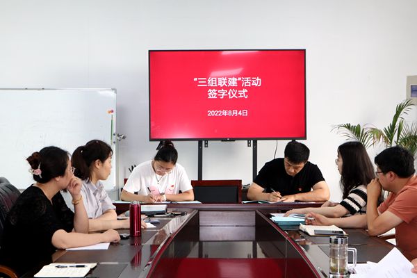 為了深入推進(jìn)“三組聯(lián)建”工作機(jī)制,8月4日下午,公司舉行“三組聯(lián)建”活動(dòng)簽字儀式,黨小組、生產(chǎn)班組、工會(huì)小組的組長參加活動(dòng)。活動(dòng)由公司黨支部副書記袁忠主持。