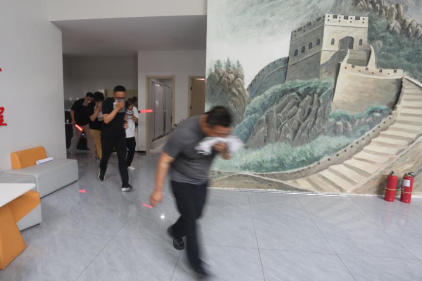理論培訓結(jié)束后,隨即開展了應急疏散演練。公司成立消防應急指揮部,公司黨委書記、董事長王德志作為現(xiàn)場演習總指揮,負責演習現(xiàn)場滅火指揮。滅火行動組、疏散引導組、設備保障組、安全警戒組、醫(yī)療救護組、通訊聯(lián)絡組、信息宣傳組等專業(yè)小組準備就緒,在收到火情報警電話后,第一時間集結(jié)各組進行應急任務分配和人員調(diào)度啟動應急演練。隨著警報聲響起,辦公樓內(nèi)全體員工迅速按照預定的疏散路線,捂住口鼻、彎腰低姿,有序地向辦公樓外安全區(qū)域疏散。整個疏散過程緊張有序,演練時長控制在2分鐘以內(nèi),有效檢驗了公司應急預案的可行性和員工的應急反應能力。