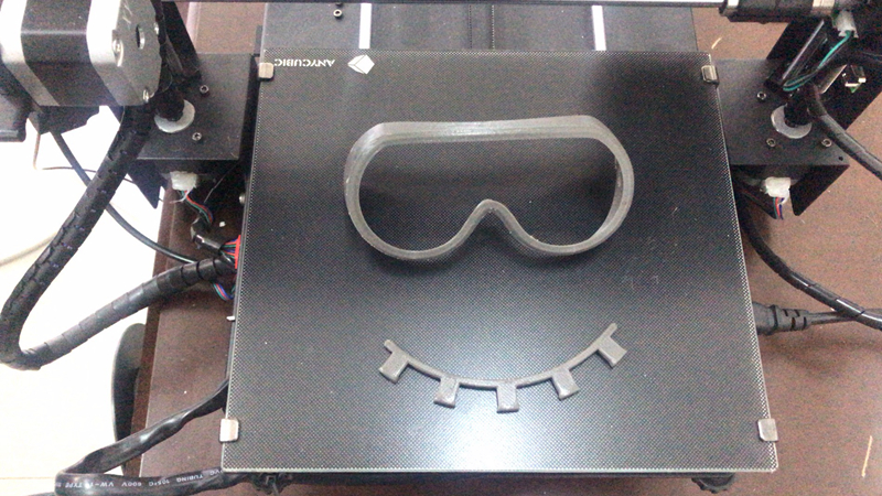 2月17日晚7時,第一件3D打印護目鏡樣品制作完成。經(jīng)過調(diào)整鏡架大小、安裝高度、松緊帶彈力、實現(xiàn)護目鏡與口罩的配合等,完成定型設計,并可根據(jù)使用者面部大小個性化定制。