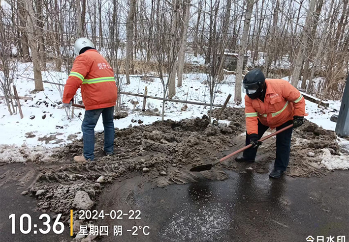 寒雪無(wú)情,人間有情,該公司黨員干部齊上陣,60余人奔赴道路一線開(kāi)展清冰掃雪工作。按照“先主后次、先內(nèi)后外、先陡后平、先重點(diǎn)后一般”的順序,對(duì)轄區(qū)內(nèi)主干道、幸福家園周邊等地的冰凍積雪進(jìn)行集中清理。在幸福家園小區(qū)清掃現(xiàn)場(chǎng),大家不懼嚴(yán)寒、干勁十足,手里拿著鐵鍬、掃帚等清掃工具,相互配合,對(duì)路面上的積雪、積冰進(jìn)行清掃鏟除,經(jīng)過(guò)大家持續(xù)奮戰(zhàn),冰雪覆蓋的路面被打掃的干干凈凈,為小區(qū)居民的出行安全帶來(lái)了保障。