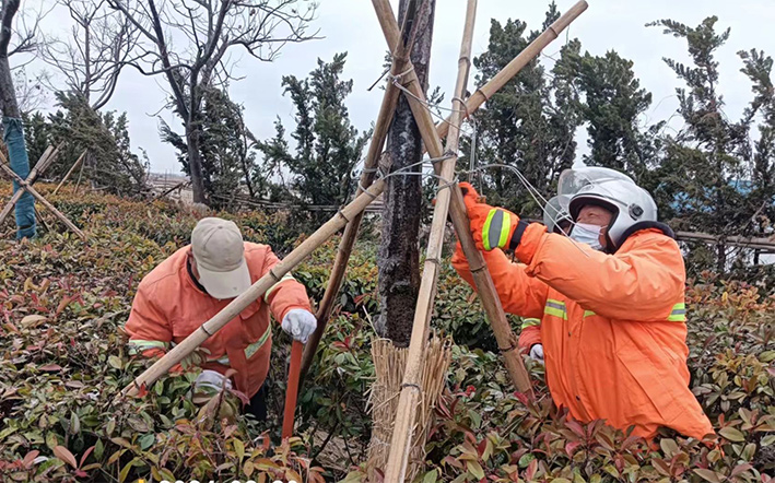 降雪發(fā)生以來(lái),在清理路面積雪保障群眾安全通行的基礎(chǔ)上,該公司迅速組織班組開(kāi)展園林苗木積雪冰凍清除工作,重點(diǎn)對(duì)黑松、雪松、龍柏、球類等苗木積雪進(jìn)行清理,及時(shí)為樹(shù)木“減壓”,避免積雪壓彎或壓斷樹(shù)枝,及時(shí)消除安全隱患,保護(hù)轄區(qū)內(nèi)綠化成果。截至目前,共計(jì)清除各類園林苗木積雪8600余株。(陳小東)