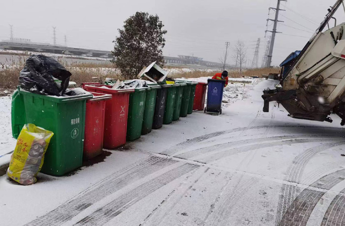 垃圾清運工作絕不后退。暴雪之中垃圾收運工作極其困難,既要面臨嚴(yán)寒考驗,又要防范雪中路滑。垃圾收運職工們清晨五點多天未曉白時即已全面開展工作。面對雪天路滑,他們小心翼翼的做好每一桶垃圾的收運和傾倒。嚴(yán)寒之中,面頰和雙手被凍的通紅,忙碌的汗水濕透衣襟,他們也馬不停蹄的做好徐圩新區(qū)范圍內(nèi)大小七八十個垃圾收運點垃圾清收工作,只為給片區(qū)居民和企業(yè)創(chuàng)造和諧的衛(wèi)生環(huán)境,沒有任何艱難畏阻他們行進(jìn)的步伐。